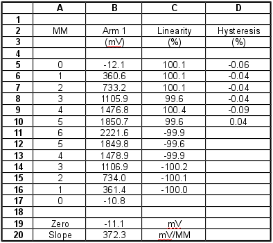 Using the facilities of the spreadsheet these data can be plotted to give a graphical representation. However it is easy to see that in this example the graph will merely show a straight line with no apparent hysteresis.